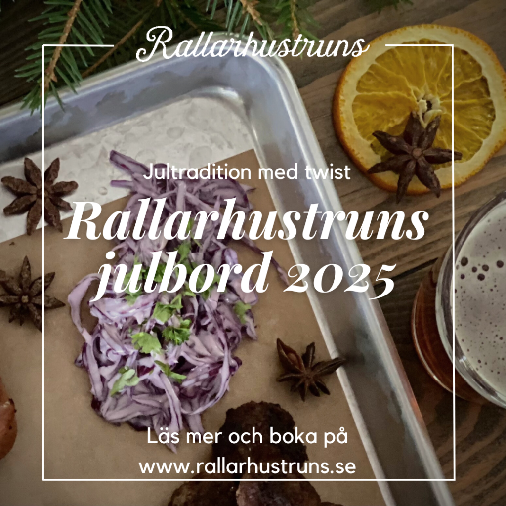 Inled julen med Rallarhustruns julbord! Traditionella svenska rätter men med lite ovanliga inslag. Som vanligt fokuserar vi på det lokala och hållbara.